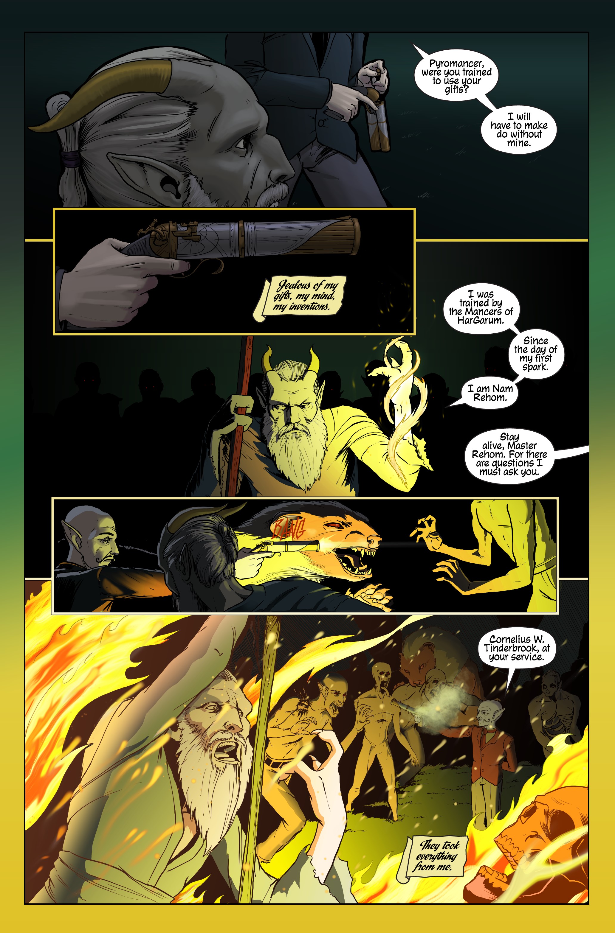 Cornelius Tinderbrook is roused from his hermitage when news reaches him of the Cog and Flame, an organization determined to eradicate magic and those who wield it. An organization that Cornelius thought he had destroyed in his youth. Joined by Nam Rehom, he sets off across a land on the brink of war between technology and magic.